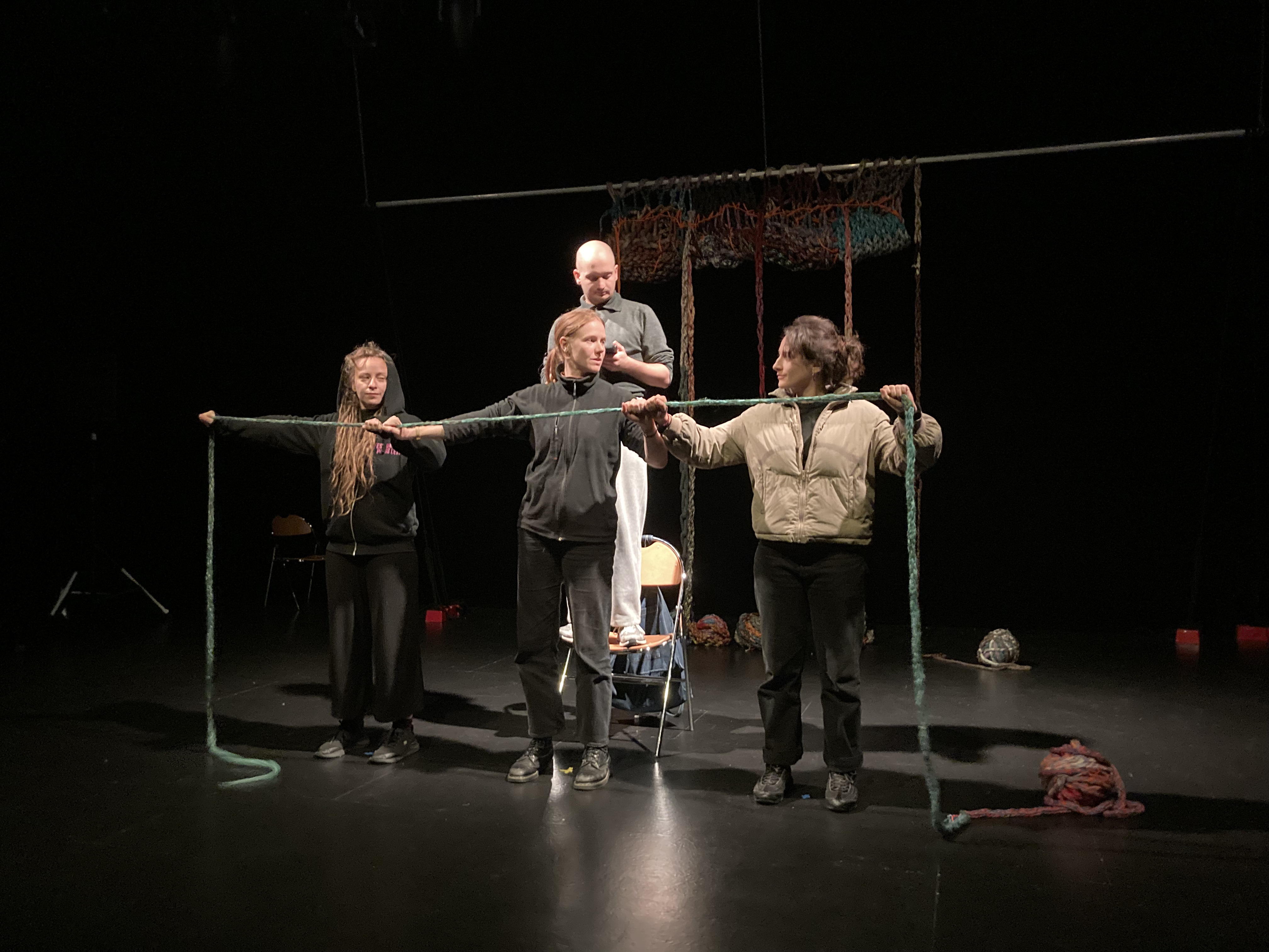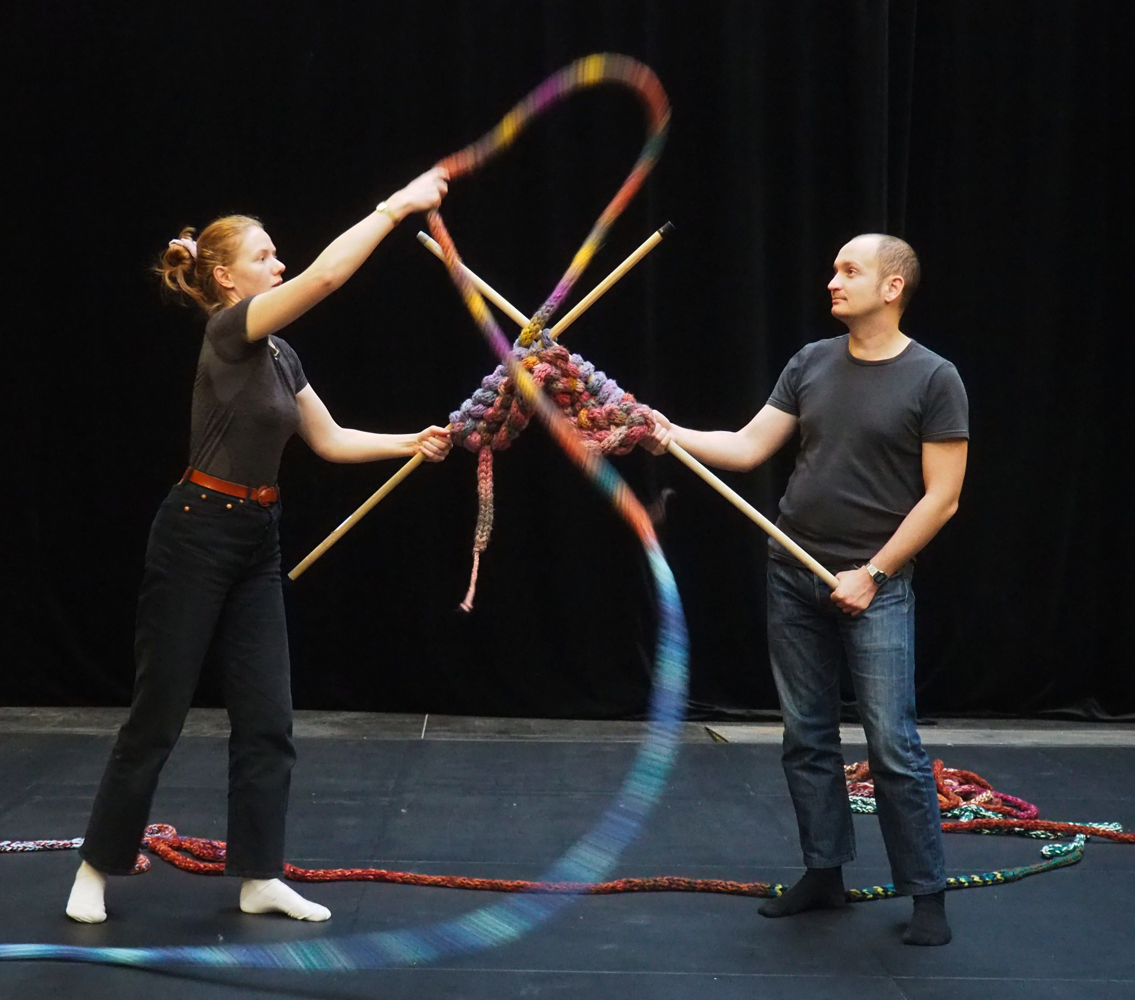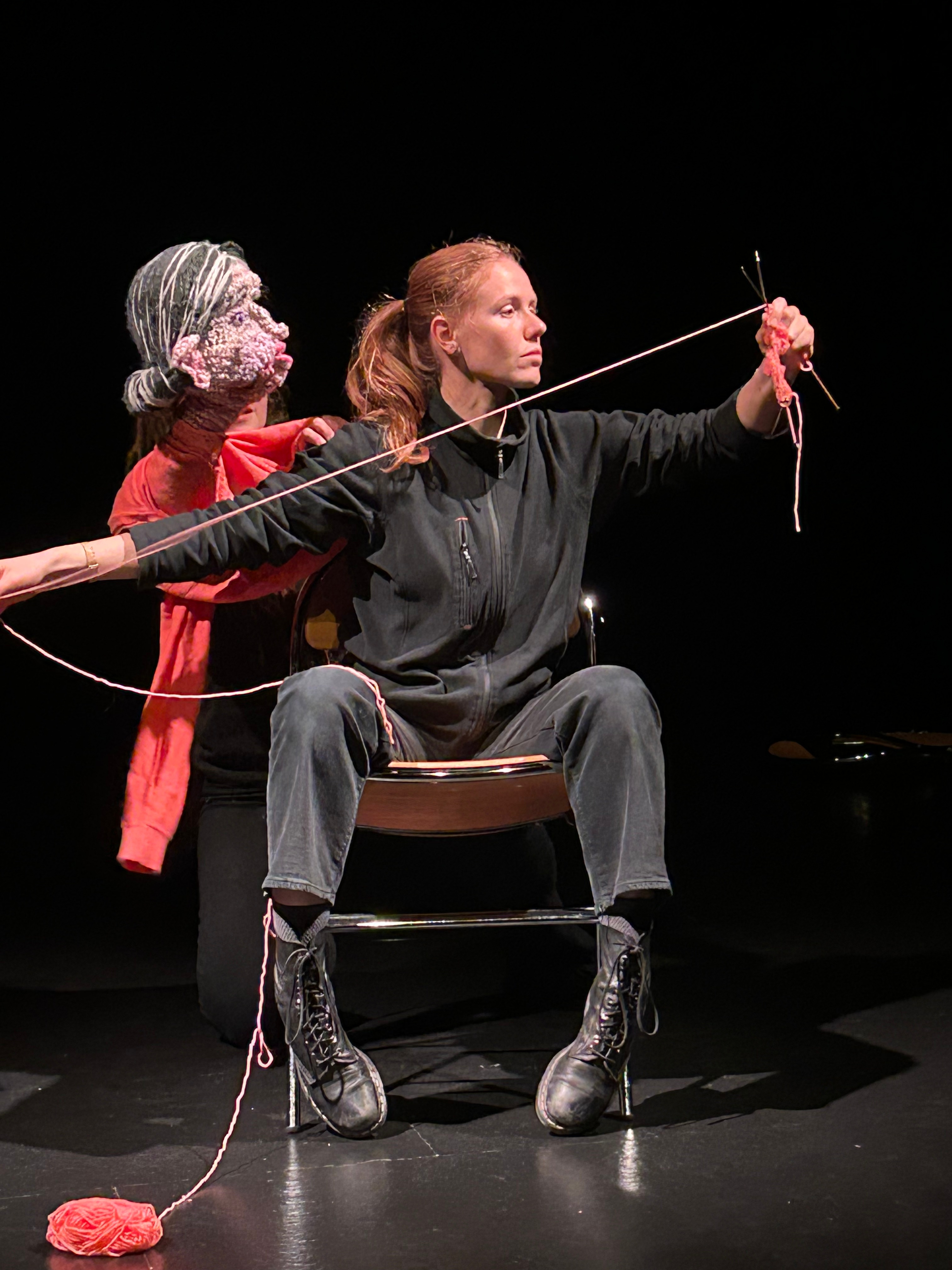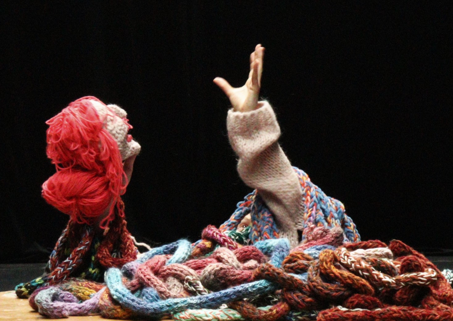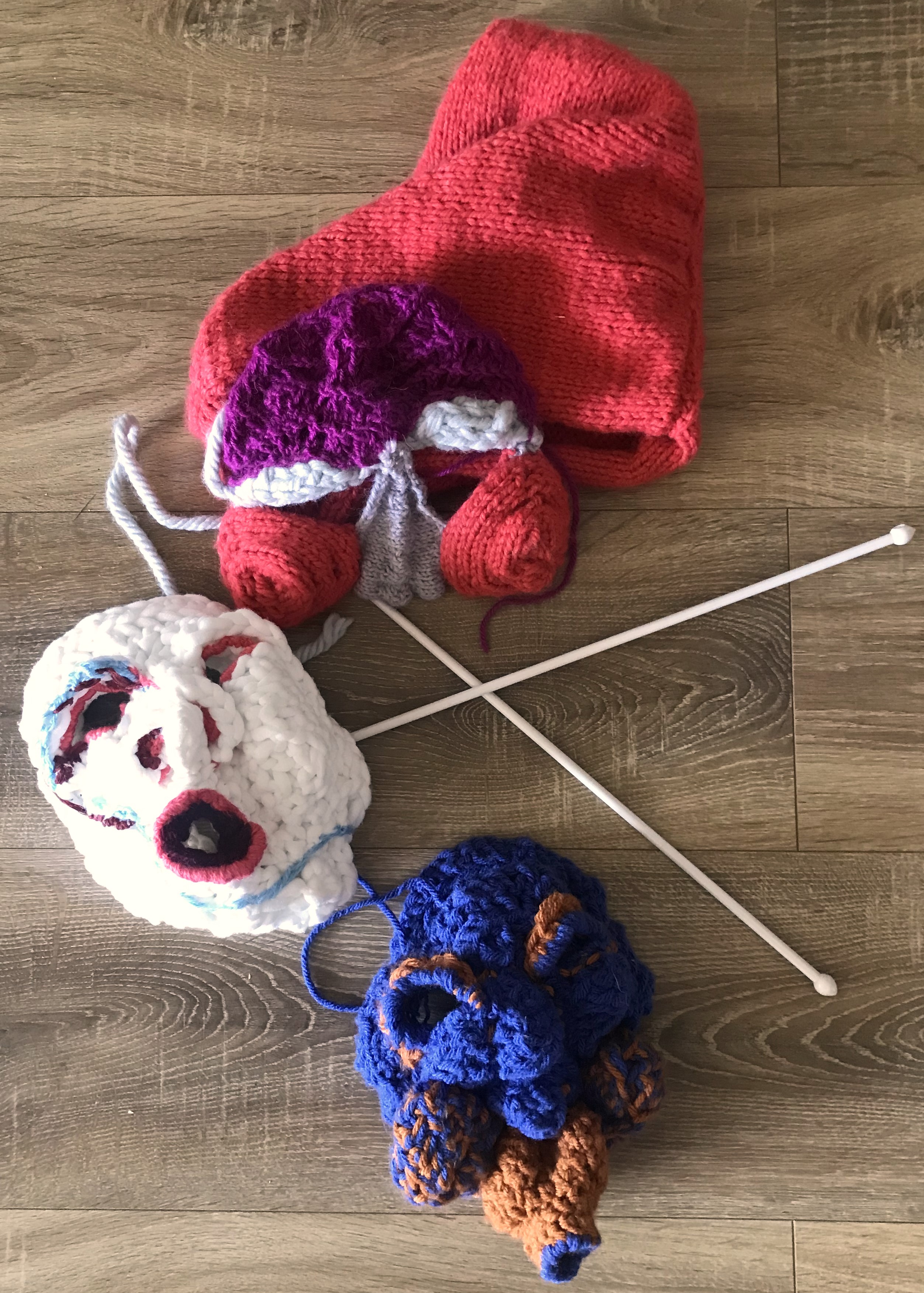 Scénographie, masques, marionnettes, créations tricotées : April Saint-James, Joanna Houri, Salomé Bathany, Clara Jude