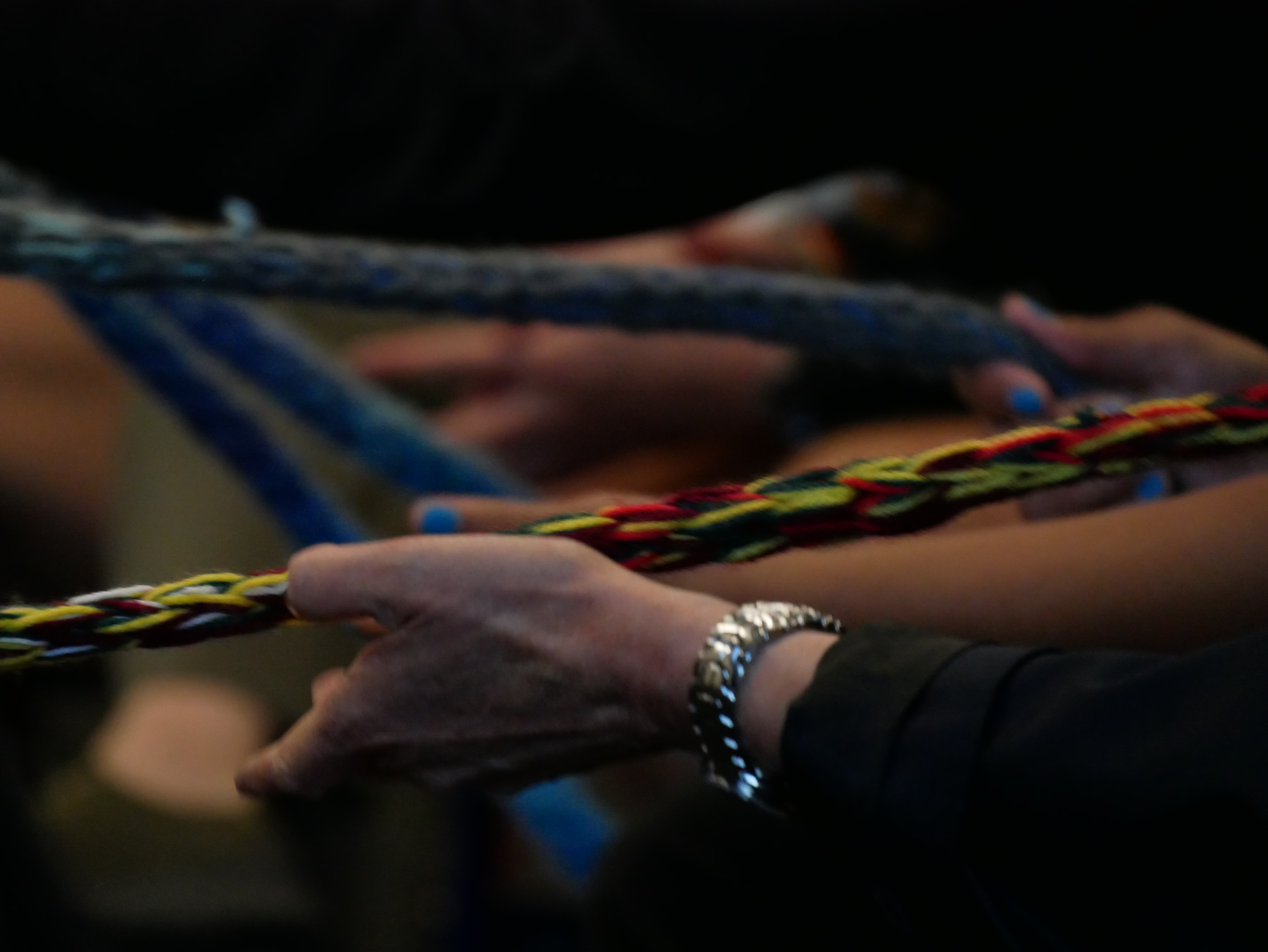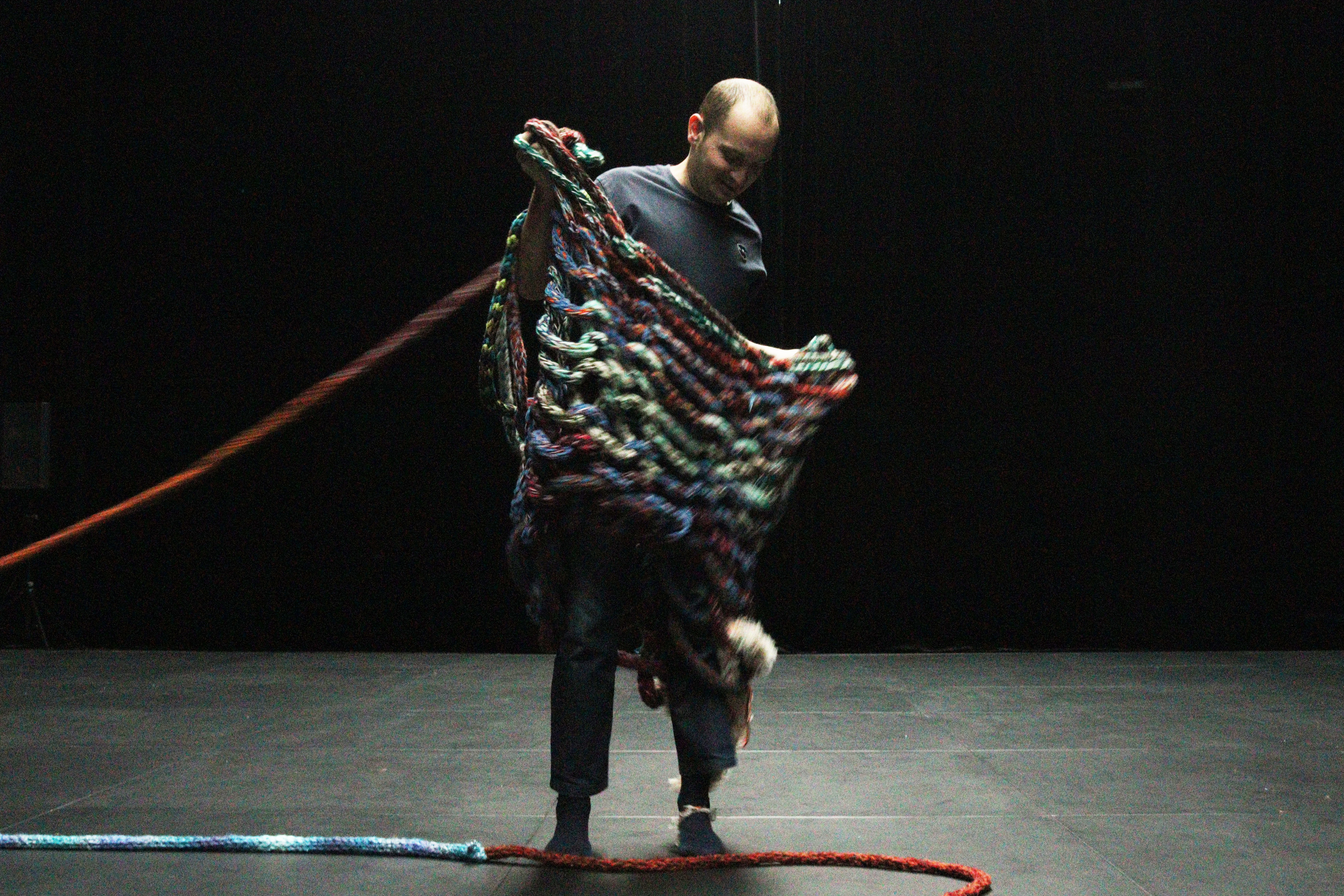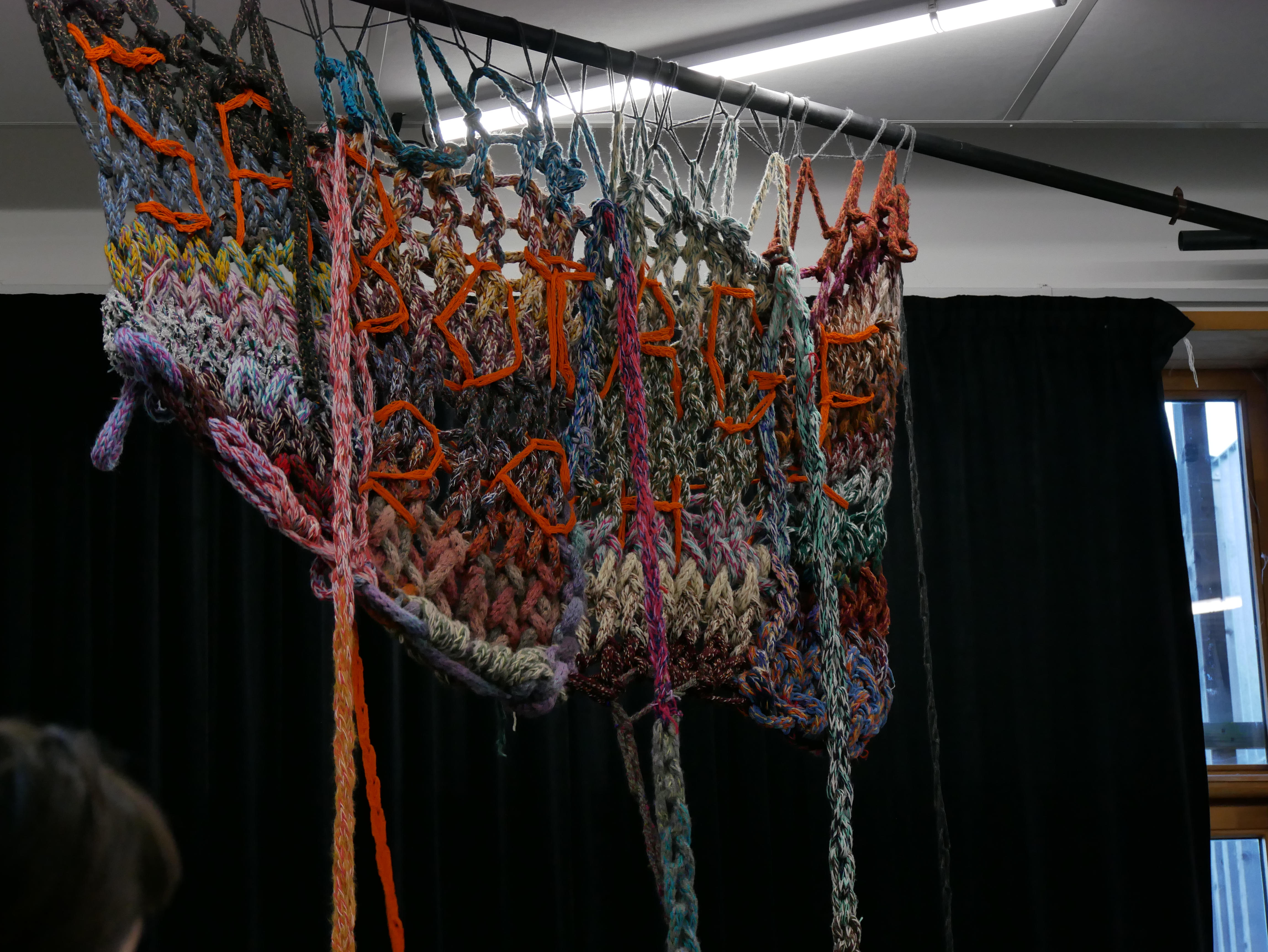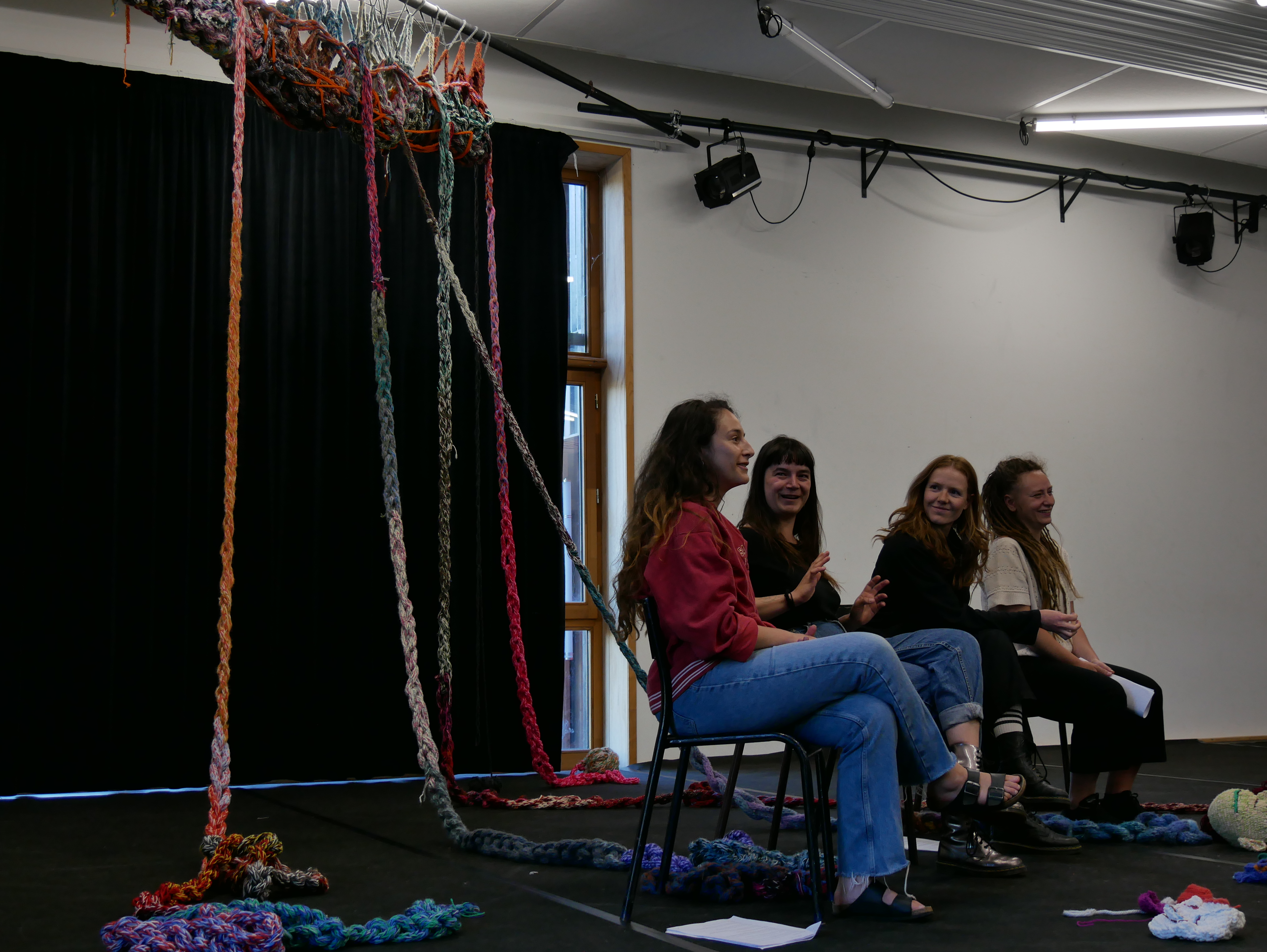 Au fur et à mesure du spectacle, récits et tricots s’accumulent.