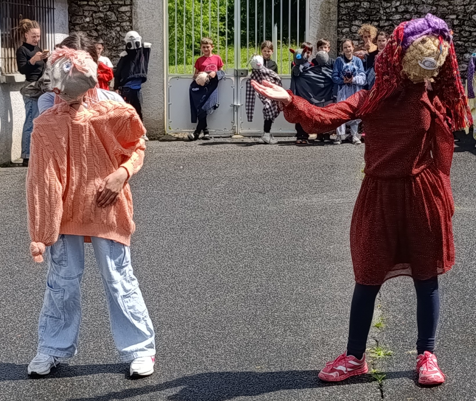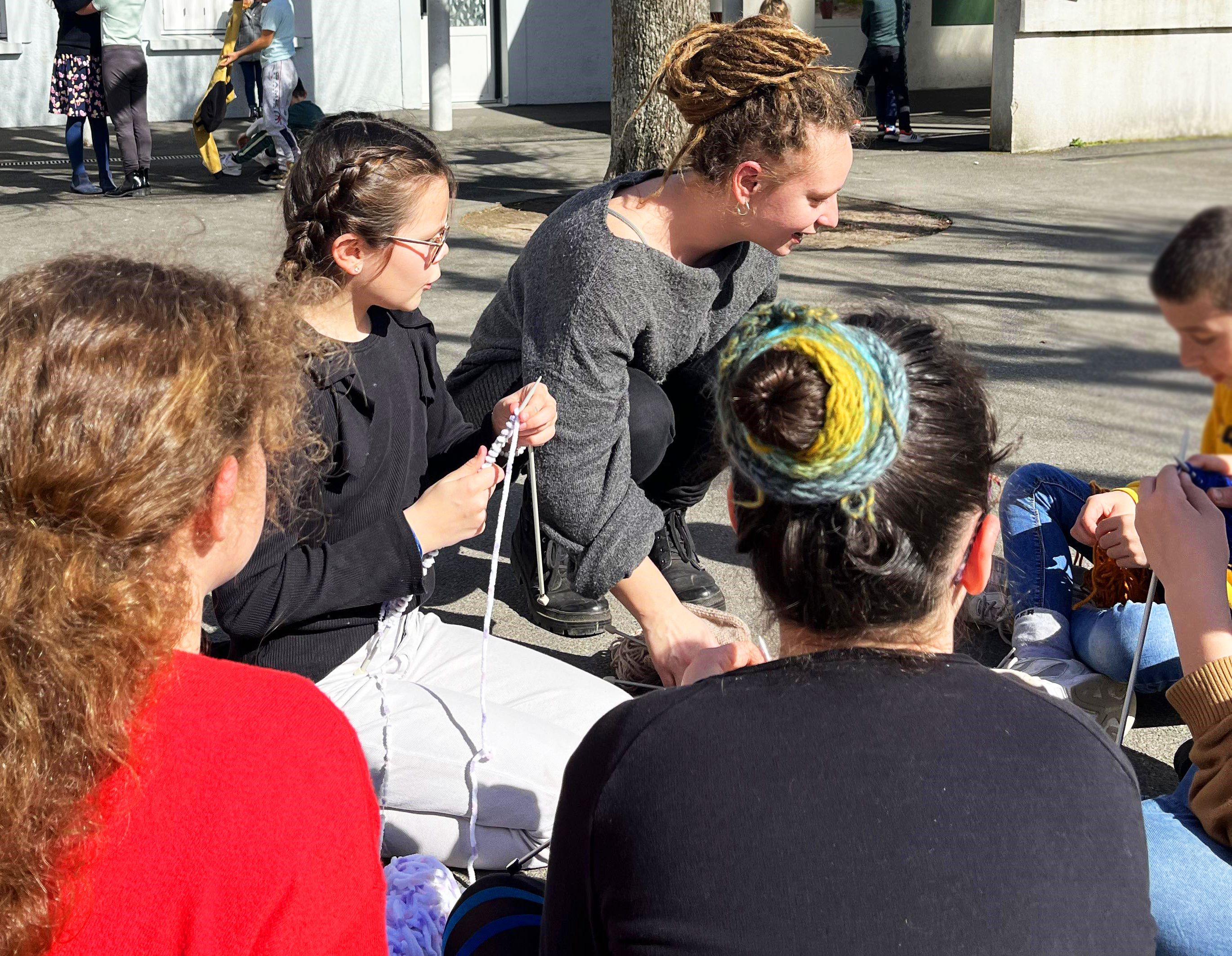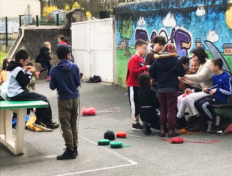 Les Tricoteuses (Salomé Bethany, Joanna Houri et April Saint-James) ont été lauréates de Création en cours des Ateliers Medicis en 2024 et ont donné des ateliers complets dans la primaire Les 2 Tilleuls de Luzillé en Touraine (37) auprès d’une classe de CM1/CM2 sur un total d’une cinquantaine d’heures. Au cours de ces sessions, les élèves ont pu découvrir l’histoire parfois méconnue du tricot, allant de ces origines aux techniques modernes utilisées aujourd’hui ainsi qu’aux figures de tricoteuses qui ont marqué l’Histoire. Les ateliers se sont poursuivis avec la création de marionnettes, où chaque enfant a pu exprimer sa créativité tout en développant ses compétences manuelles. Ils ont également expérimenté la manipulation de marionnettes. Le tout s’est fini en beauté lors d’une parade le jour de la fête de la musique.
