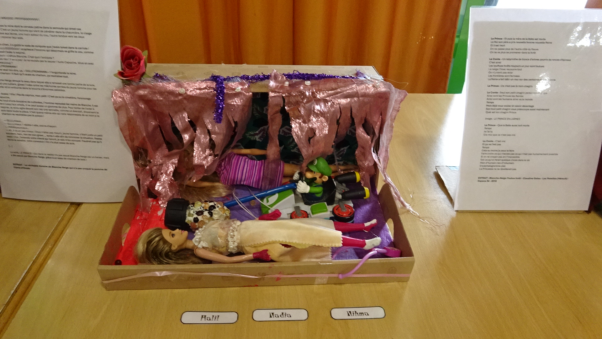 - Figures plastiques : Création de sculptures inspirées de Blanche-Neige en utilisant des objets du quotidien et des jouets.